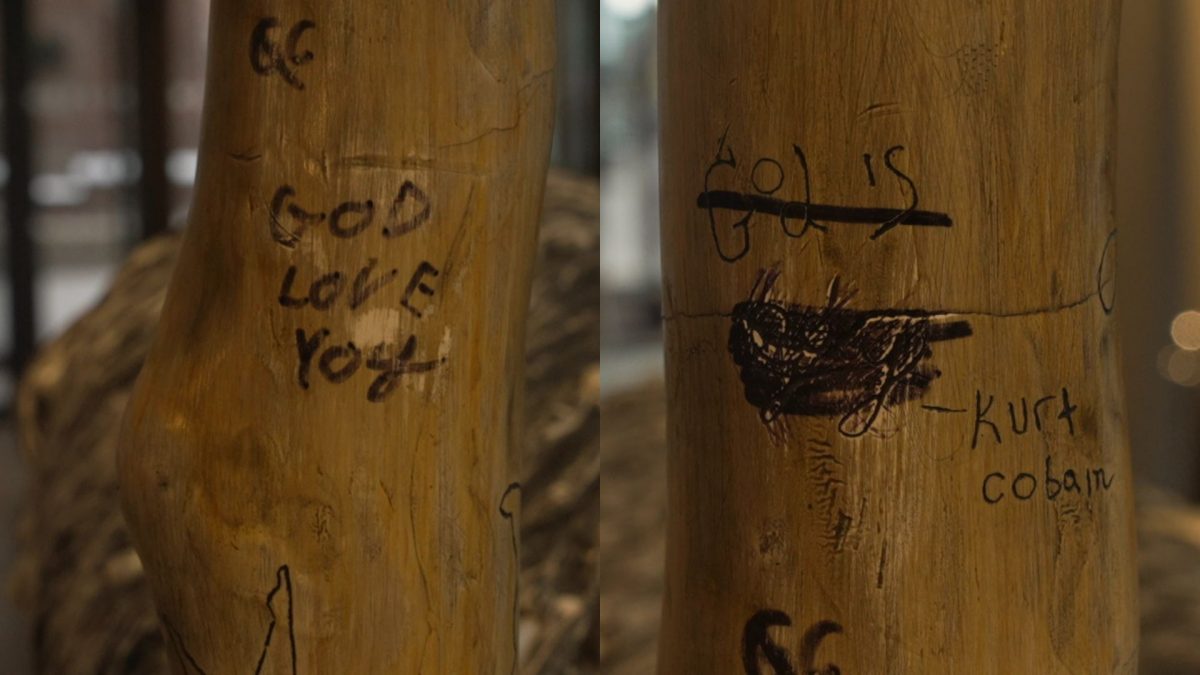 For the piece, Puntar copied images she found around Kingston directly onto the sculpture, including a quote from the late musician Kurt Cobain, which she saw graffitied on the walls of the nearby All Saints Church.