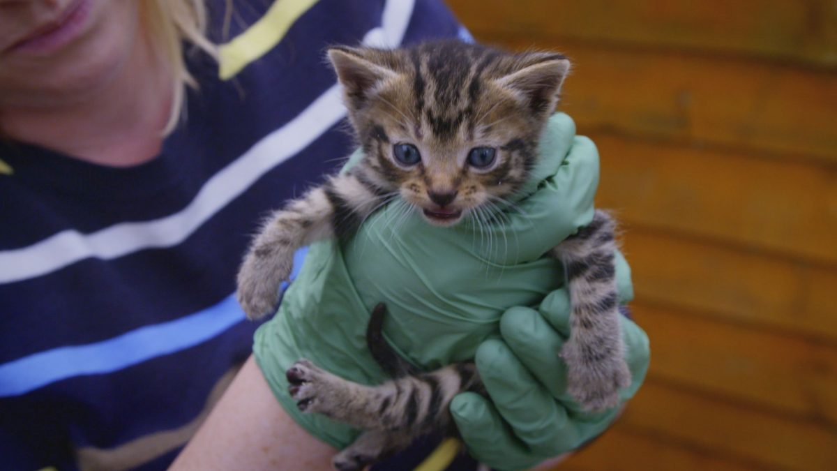 Joanna Page helping RSPCA officer to rescue a kitten. Credit: ITV / Shutterstock