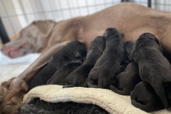 Daphne, the local labrador, shocked her owners when she gave birth to a near record breaking litter.