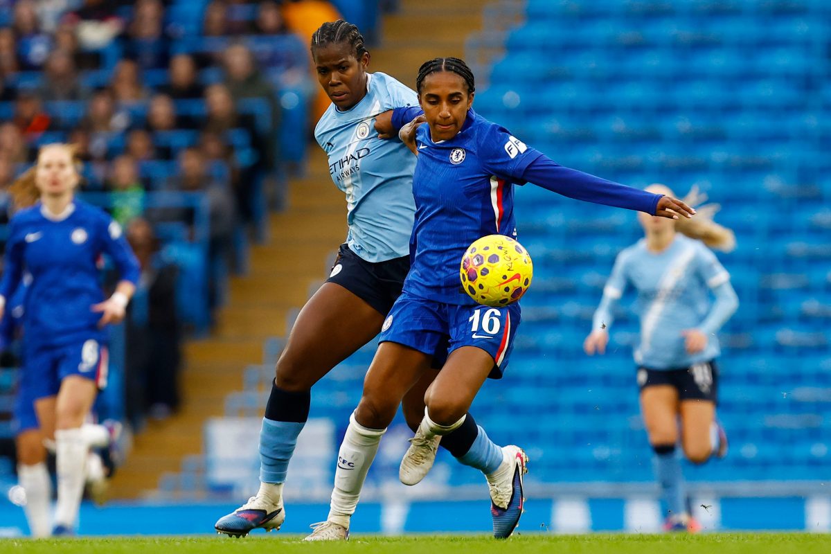 Manchester City took a lead in the 13th minute when 25-year-old Kerolin capitalised on a failed Chelsea clearance from Kerstin Casparij’s corner, firing through a crowded penalty area into an unguarded net with goalkeeper Hampton caught out of position after advancing to assist her defence.